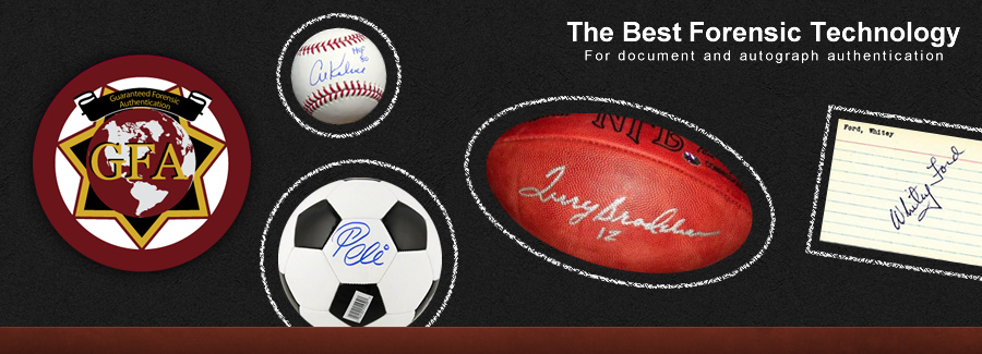 Sports, entertainment, and historical autographs can be submitted to GFA. From George Washington to Barack Obama, Babe Ruth to Tim Tebow, Frank Sinatra to Bruno Mars; GFA can handle a variety of signatures. GFA employs forensically trained experts with a diverse knowledge and years of professional experience to examine your signatures. Read more